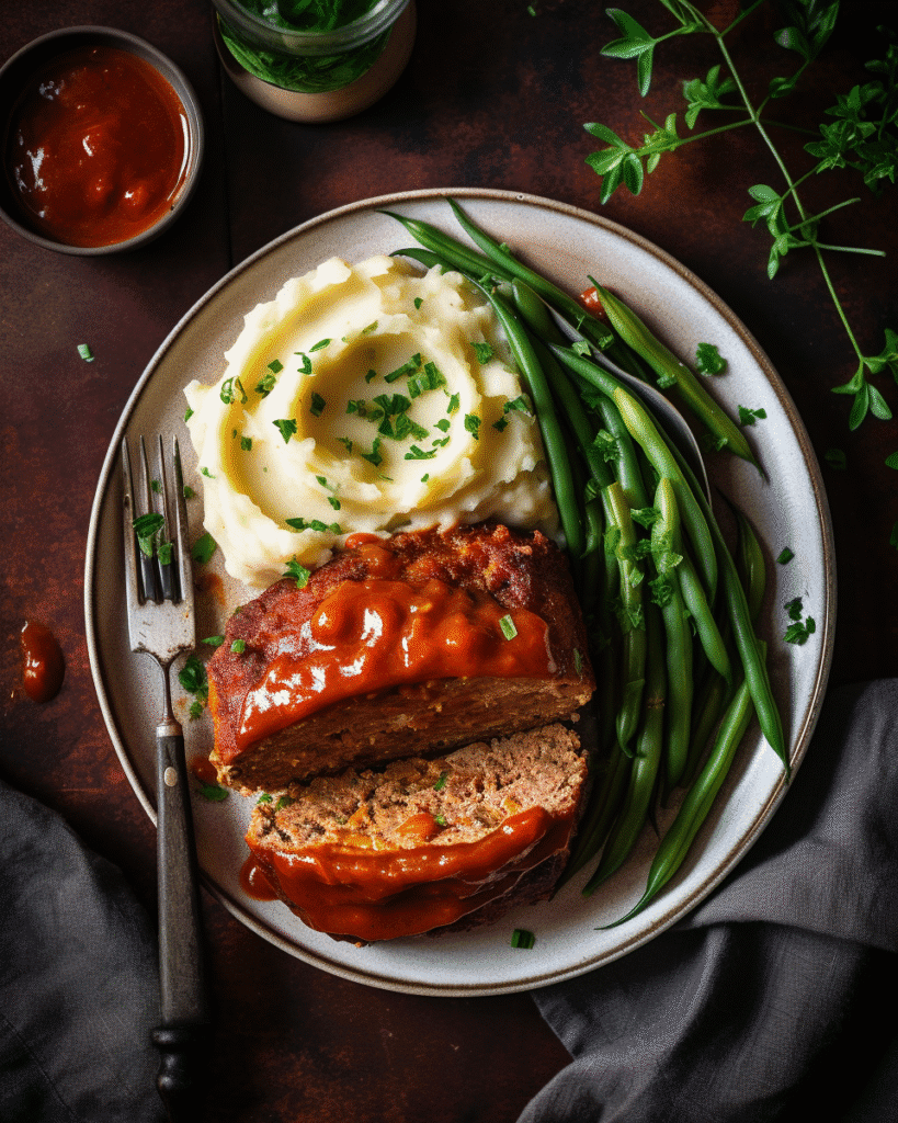 Cajun Meatloaf pairs well with sides like mashed potatoes, green beans, cornbread, and a cold drink like iced tea or lemonade.