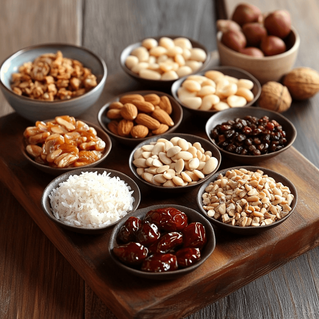 • Add Nuts & Seeds: Stir in walnuts, almonds, sesame seeds, and rock sugar (if using).